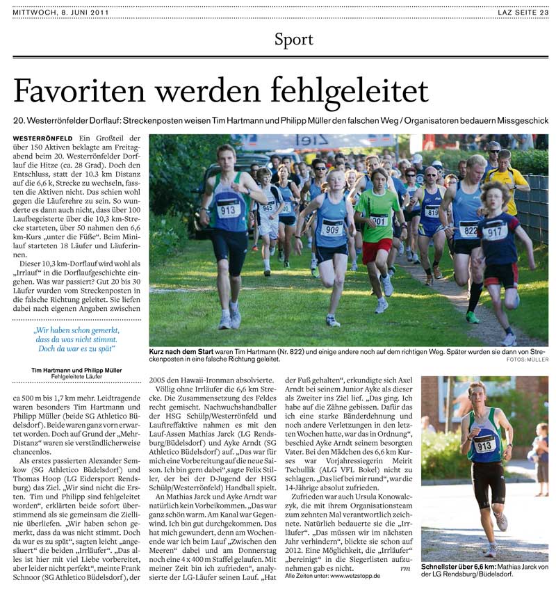 08.06.2011 - 06:37: LZ-Artikel über Westerrönfelder Dorflauf