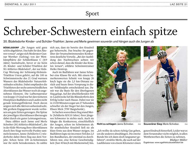 05.07.2011 - 06:26: LZ-Bericht vom Kids-Triathlon in Büdelsdorf